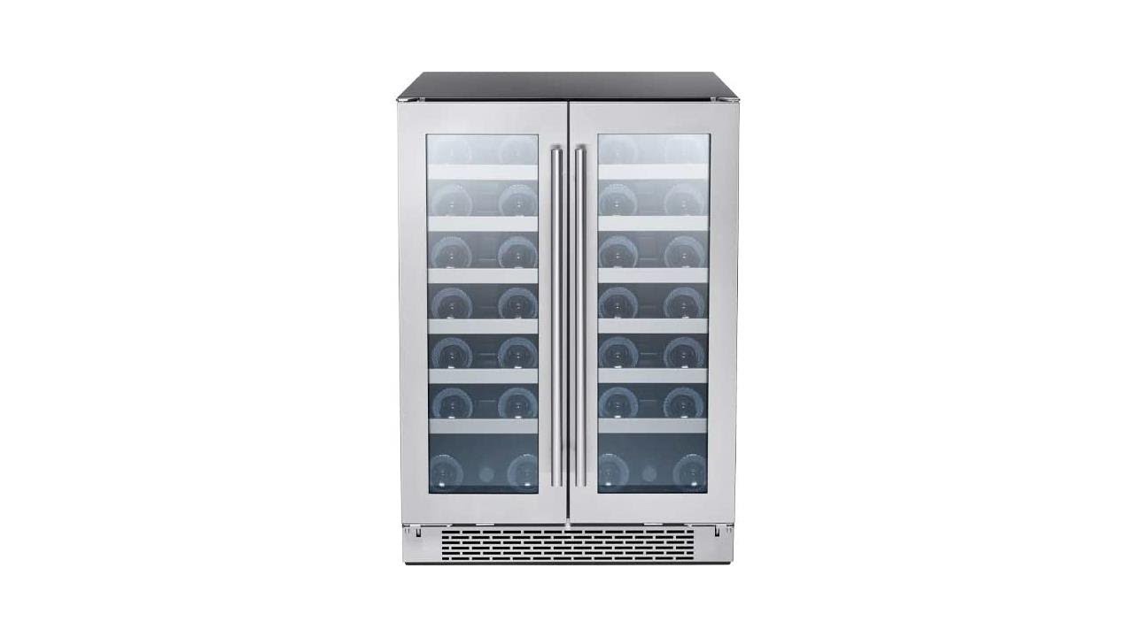 Zephyr Presrv Dual Zone Wine Cooler with Glass French Door. 24 Inch 5.15 cu/ft. Refrigerator for Under Counter, Wine Fridge, 21 bottles, -Size Built-In Wine Cellars