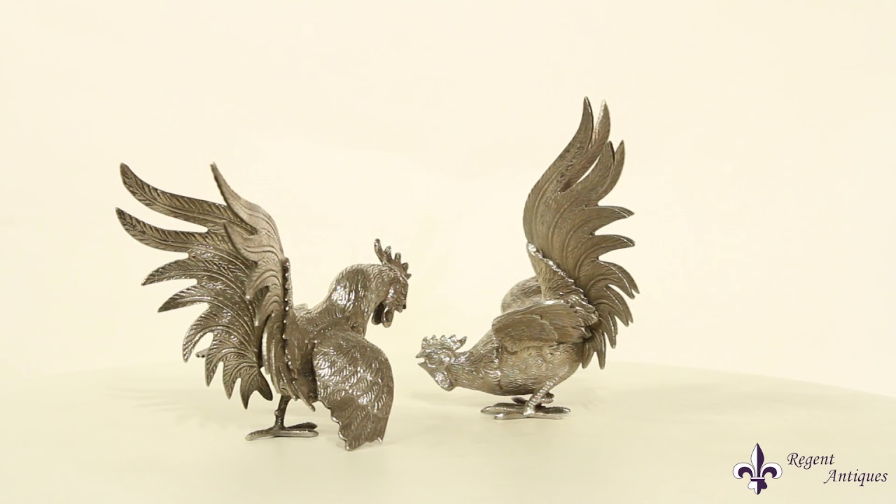 This is a very attractive antique pair of French silver plated fighting cockerels, Circa 1880 in date.