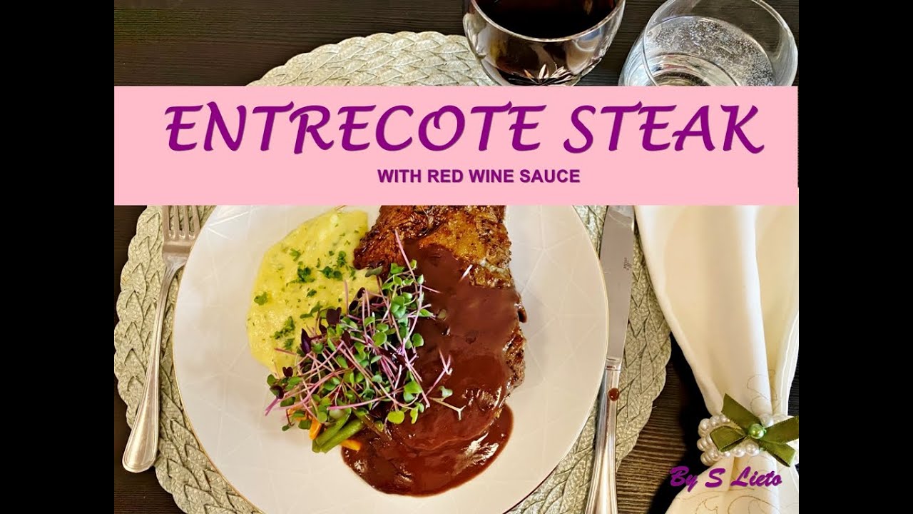 In this video I would like to share a recipe of entrecote steak with red wine sauce with home version. A typical French cuisine , a perfect choice for Dinner . There are some cooking technic to get good steak, for example Sous vide that usually used in restaurant able to control temp of meat . As i dont have that equipment, so i just use pan-seared technic , but the result is as amazing as like in the restaurant.
