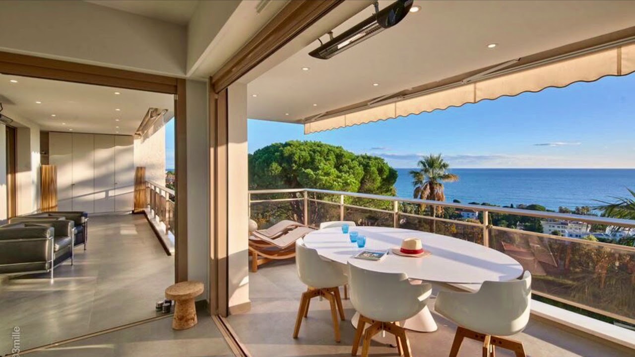 Close to the center of the city and the beach with an amazing sea view, this top floor apartment in a prestigious residence with pool, concierge and park is on the market.