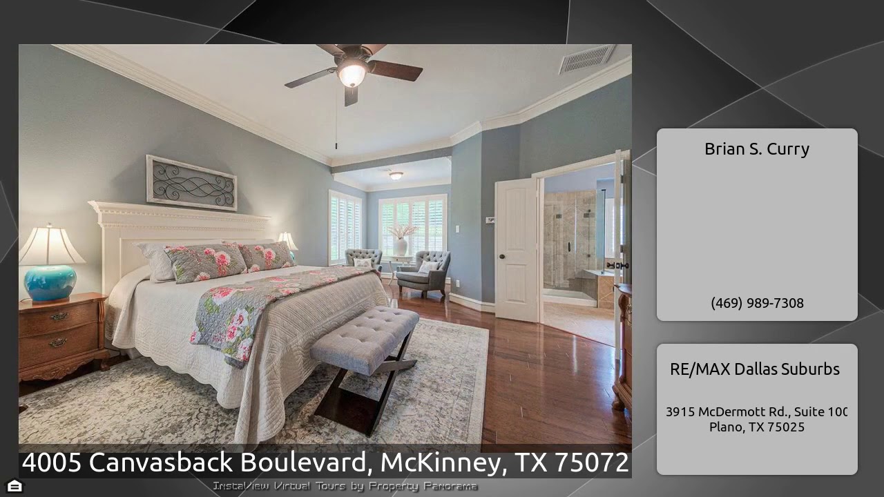 The Virtual Tour for the property at 4005 Canvasback Boulevard, McKinney, TX 75072 listed for $624,900: Other homes for sale by Brian S. Curry of RE/MAX Dallas Suburbs: **BEAUTIFUL MALLARD LAKES HOME BY DAVID WEEKLEY** **ORIGINAL OWNERS** This gorgeous north facing home is situated across from stunning natural beauty! Enjoy peace and tranquility on your large brick front porch. Not a drive-by home! Lovely hardwood flooring throughout most of downstairs. Office with french style doors. Formal dining room. Open floor plan with extensive natural light in gourmet kitchen, breakfast and living …