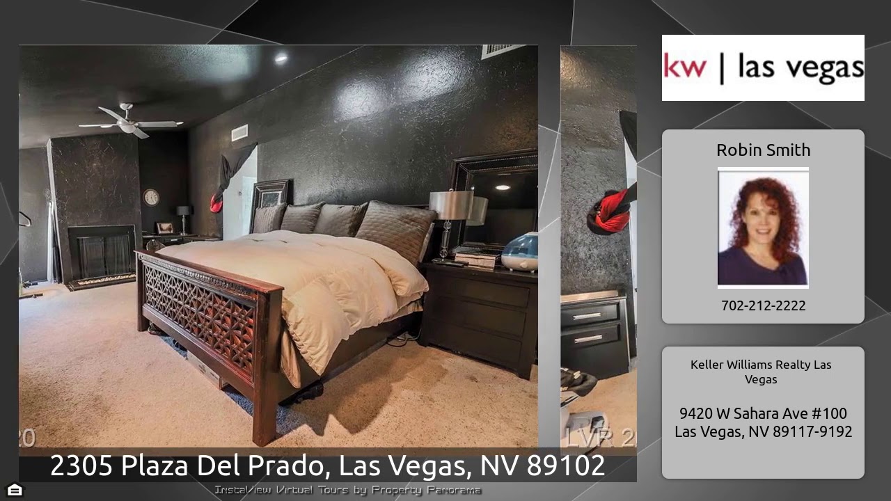 The Virtual Tour for the property at 2305 Plaza Del Prado, Las Vegas, NV 89102 listed for $549,990: Other homes for sale by Robin Smith of Keller Williams Realty Las Vegas: Stunning 3,300 sq. ft. great room plan in Spanish Oaks! Guard gated, 6 pools, tennis, clubhouse, parks & more*Soaring 20' ceilings in great room, ceiling fans, 3 way fireplace, 8' triple French Door*Formal Dining room w/16' ceilings & 8' triple French Door*Formal entry*4 bdrms*3 baths*Bdrm #2 w/covered balcony & walk-in closet*Bdrm #3 w/walk-in closet*Bdrm #4 down w/triple closet*3/4 bath down – fully remodeled*Loft*Mstr …