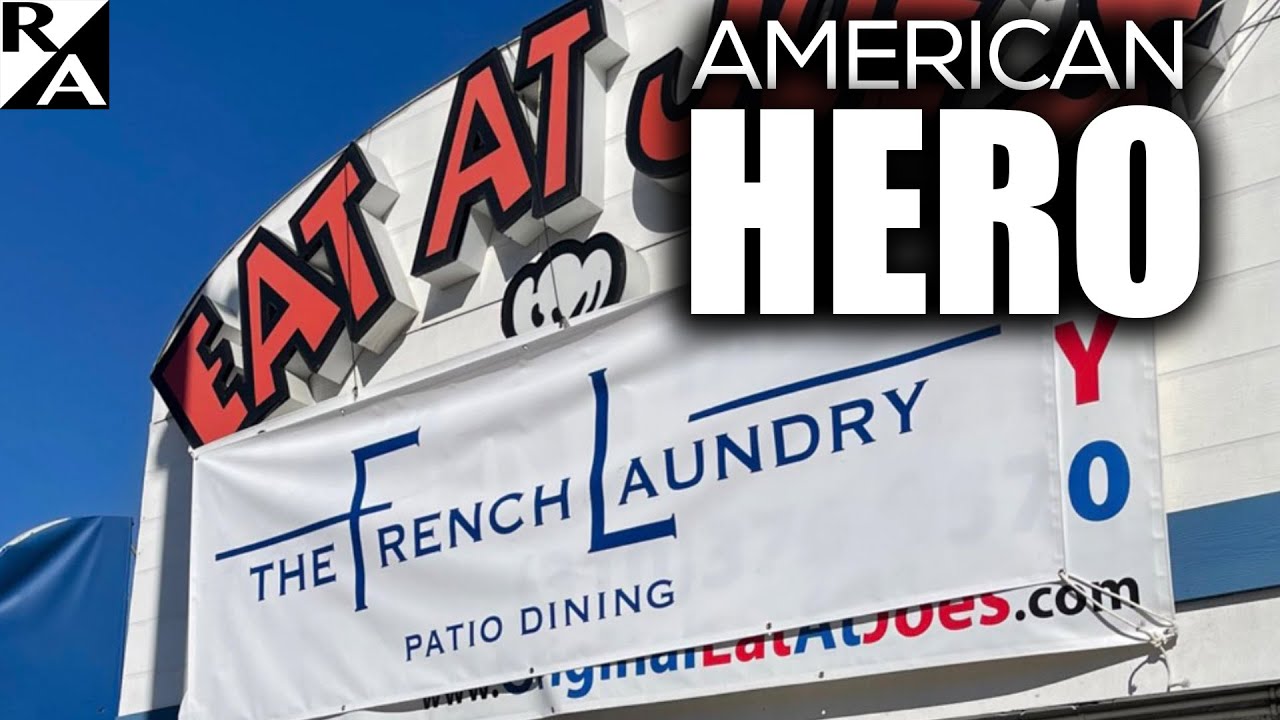 ‘Eat at Joe’s’ restaurant owner Alex Jordan hangs a banner on his Redondo Beach restaurant, dubbing it ‘The French Laundry’ after California’s hypocrite Gov. Gavin Newsom enjoyed a pandemic at the legendary home of Chef Thomas Keller. Jordan’s satirical sign mocks the hypocrisy of Nanny Newsom flouting the COVID-19 rules he demands his royal subjects obey.