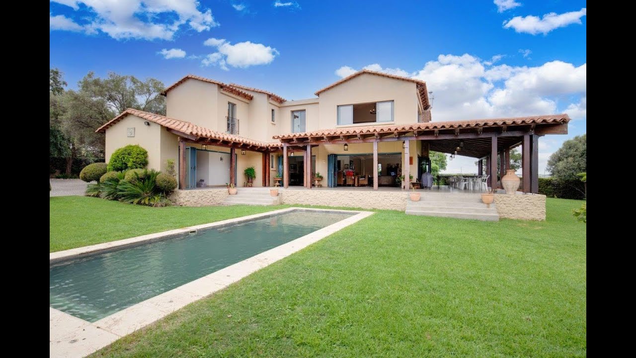 This truly magnificent property is superbly situated within Saddlebrook Estate taking advantage of the spectacular views. Driving through the gates you are transported into a land of beautiful indigenous trees, lavender and iceberg roses. This custom built home has been lovingly renovated and combines practical country living with stylish elegance. The tailormade front door leads through the entrance hall into the expansive living areas. The spacious living-room, dining-room and open-plan gourmet kitchen are flooded with light and feature a wood burning fireplace and wooden floors. Aluminium stacker doors open onto a vast wrap around covered patio overlooking the sparkling pool, treed garden and beautifully appointed stable yard. The kitchen boasts all the pre-requisites, including centre island, gas hob, pantry, huge scullery and laundry area. The ground floor is completed with an extensive family room which is beautifully finished with exposed beams and brickwork, a guest suite with bathroom and guest cloakroom.