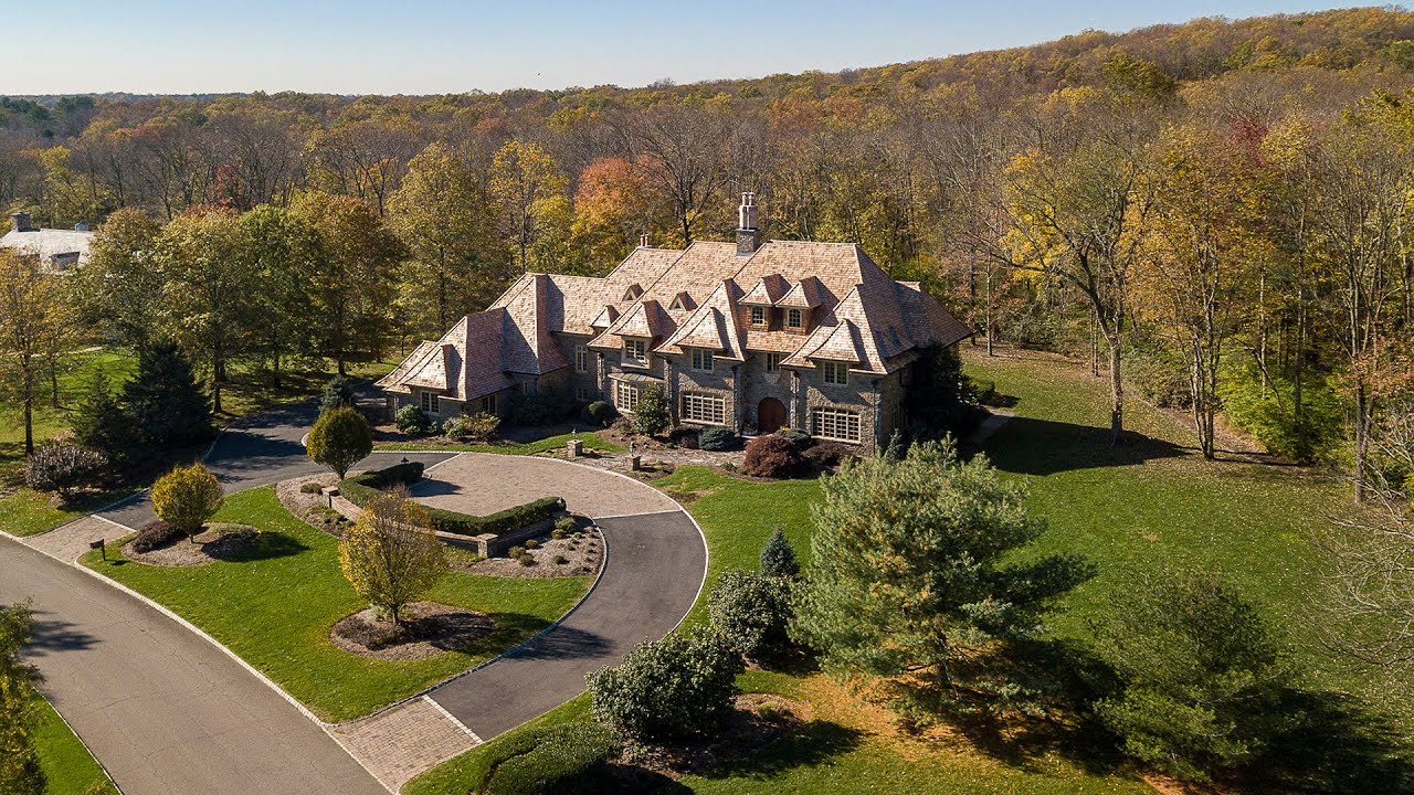The Rushbrook enclave is known for spacious homes of distinction and this tudor-style residence, clad in stone, is perhaps the most picturesque of them all. Perched on a wide lot just shy of 3.5 acres, it is wrapped in woodsy privacy on three sides. Renowned Barsky Builders, skilled at creating custom spaces that make entertaining easier and everyday life a bit more indulgent, did not hold back on architectural features. A corbeled archway in the foyer and a recessed oval ceiling in the dining room make a striking impression, but such details are not just for formal rooms. The open Great room off the gourmet kitchen awes with a rounded two-story window and a paneled wall to match. While a sunroom lined with French doors and fanlights sparkles with light, the adjacent library’s rich wood paneling and coffered ceiling are completely enveloping. Seven bedrooms all have custom closets, including the decadent master with double sided dressing room. On the lower level, a gym with sauna, home theater, and wine cellar radiate from an open party room.