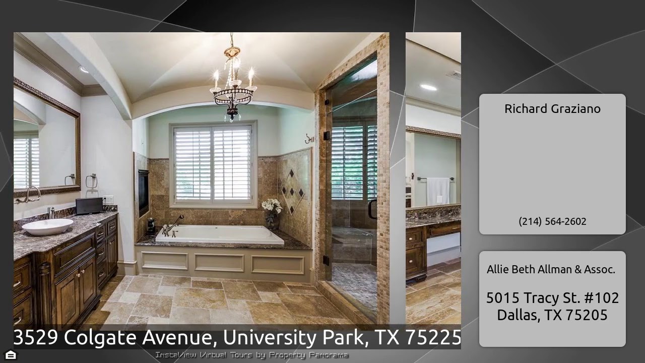 The Virtual Tour for the property at 3529 Colgate Avenue, University Park, TX 75225 listed for $2,650,000: Other homes for sale by Richard Graziano of Allie Beth Allman & Assoc.: Exceptional size and value on one of the best blocks in University Park! This home boasts gorgeous light-filled spaces with elegant staircases, beautiful formals, crisp crown moldings and handsome study with full bath. The gourmet kitchen features Wolf appliances and spacious breakfast area that opens to the sizable family room lined with French doors. Downstairs media room and wet bar ideal for entertaining. …