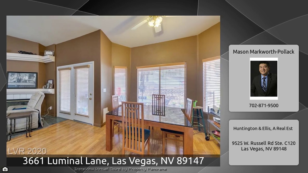 The Virtual Tour for the property at 3661 Luminal Lane, Las Vegas, NV 89147 listed for $390,000: Other homes for sale by Mason Markworth-Pollack of Huntington & Ellis, A Real Est: Spacious single-story with NO HOA! This 3 bedroom, 2 bathroom, 2002 sq foot home is located in southwest with easy access to freeways, shopping, and dining. Inside there are two living spaces with the living and family room. Open concept living with the kitchen, family and dining room. The primary bedroom has an en suite with dual sinks, separate shower and garden tub. Through French doors in the family room you reach …