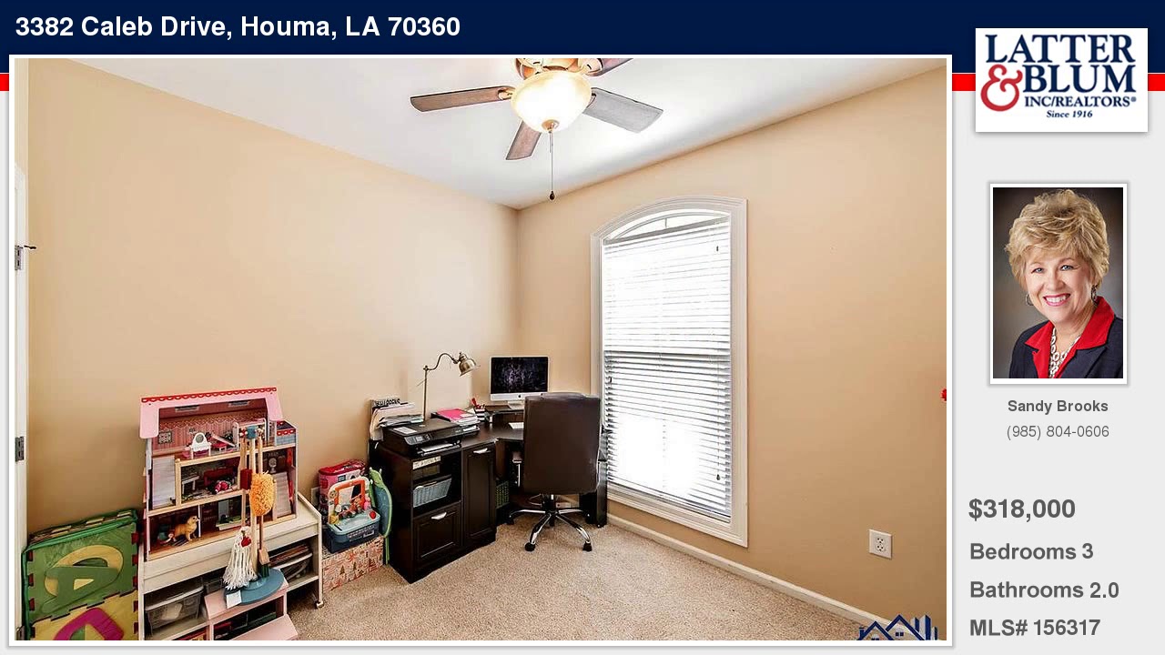 3382 Caleb Drive Houma Louisiana Homes for Sale | www.latter-blum.com | Sandy Brooks with Latter & Blum Companies | See full property details at | Gorgeous Country French-style home in demand area. Great curb appeal & features professional landscaping. Easy access to new Hollywood Extension. Main living & dining area has stunning Australian Cypress floors & is very spacious with 11 ft. Coffered ceiling. Roomy breakfast area opens to large screened porch & patio. Luxurious Master bath also offers access to patio. Must see! Easy to show!