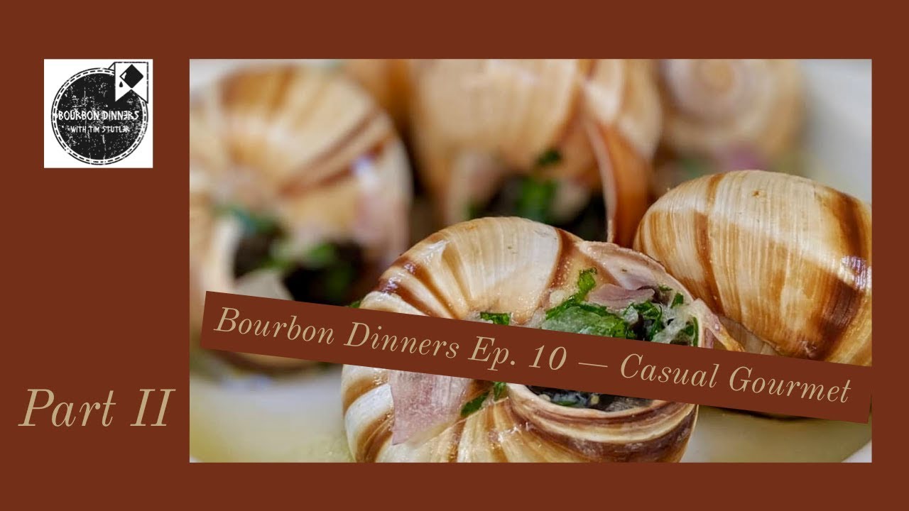 Who says gourmet dinners require dinner jackets—or even long pants and skirts for that matter? This episode includes linen, elegant place-settings, and such high-end fare as Escargots à la Bourguignonne, Pan-Roasted Duck Breast with Lingonberry Sauce, Truffled Polenta, Cognac-Chocolate Mousse with Maple Chantilly, and good wine. But Tim and his guests will chow down in their shorts and T-shirts. Hey, it’s August and this is laid-back Southern California.