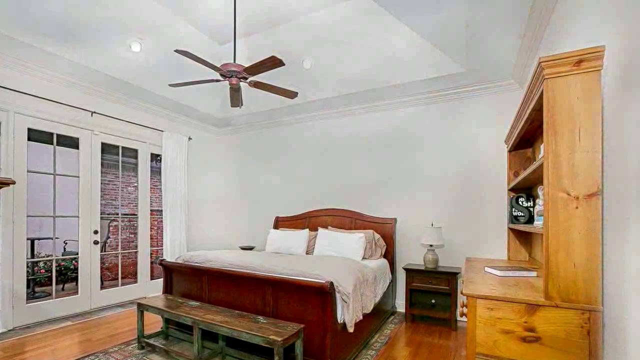 This New Orleans style custom home is a must see! The home features beautiful beams, exposed brick, architectural moldings, and hardwood floors. Enter the home through a spacious private courtyard with gas lantern, fountain, slate floor and large sitting area. French doors open to the front courtyard from the dining room. Just off the dining room is a wine room complete with wrap-around cabinetry and a wine cooler. There is a butlers pantry with sink connecting the dining area to the gourmet kitchen. The kitchen has so much to offer with a 6-burner Jennair gas cooktop, oven, warming drawer, dishwasher, two sinks, built-in refrigerator, tons of storage, a walk-in pantry, and large island with seating for four. The living room boasts two sets of French doors, a wall of floor to ceiling bookcases, and a gas fireplace with substantial mantle. The living room overlooks the well-appointed outdoor living area with kitchen, fireplace, pool, and a beautiful view of the pond. The outdoor space of the home is spectacular! Enjoy cooking outdoors with Blaze grill and side burner, fridge, and sink. In addition, there are retractable privacy screens. Find two bedrooms and two full baths downstairs and one bedroom with a full bath may be found upstairs. The roomy master suite has a 10 x 10 foot custom closet, a jetted tub, and a multi-head walk-in shower. French doors lead from the master bedroom to another outdoor space featuring stained concrete. A full house generator ensures comfort during power outages.