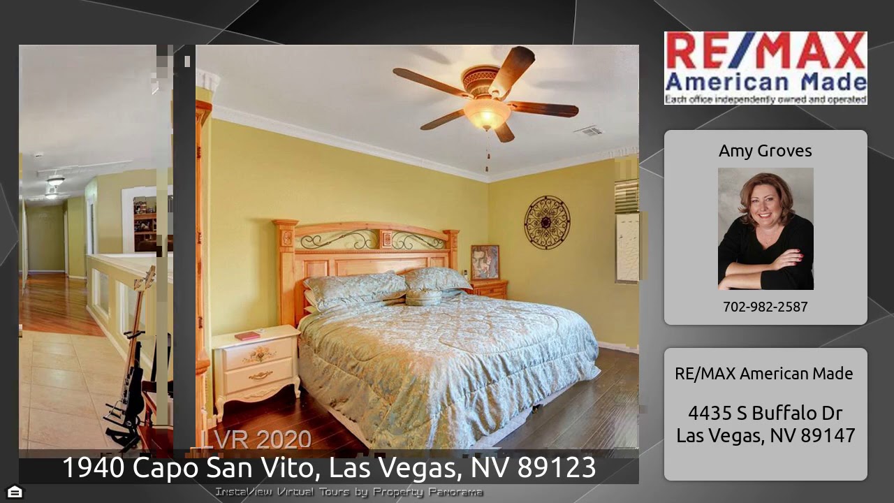 The Virtual Tour for the property at 1940 Capo San Vito, Las Vegas, NV 89123 listed for $519,999: Other homes for sale by Amy Groves of RE/MAX American Made: Gorgeous home includes 4 bedroom,3 bath with bonus room AND office. Conveniently located nearby school , Sam’s Club, Walmart,Home Depot ,Ross ,restaurants, shopping centers. This 3203 sq ft home has impressive 19' foot high ceilings in formal living room, formal dining room, spacious family room and kitchen with French door leading to the backyard patio. Dining room overlooks formal living room, tall ceilings draw your eye to the second …