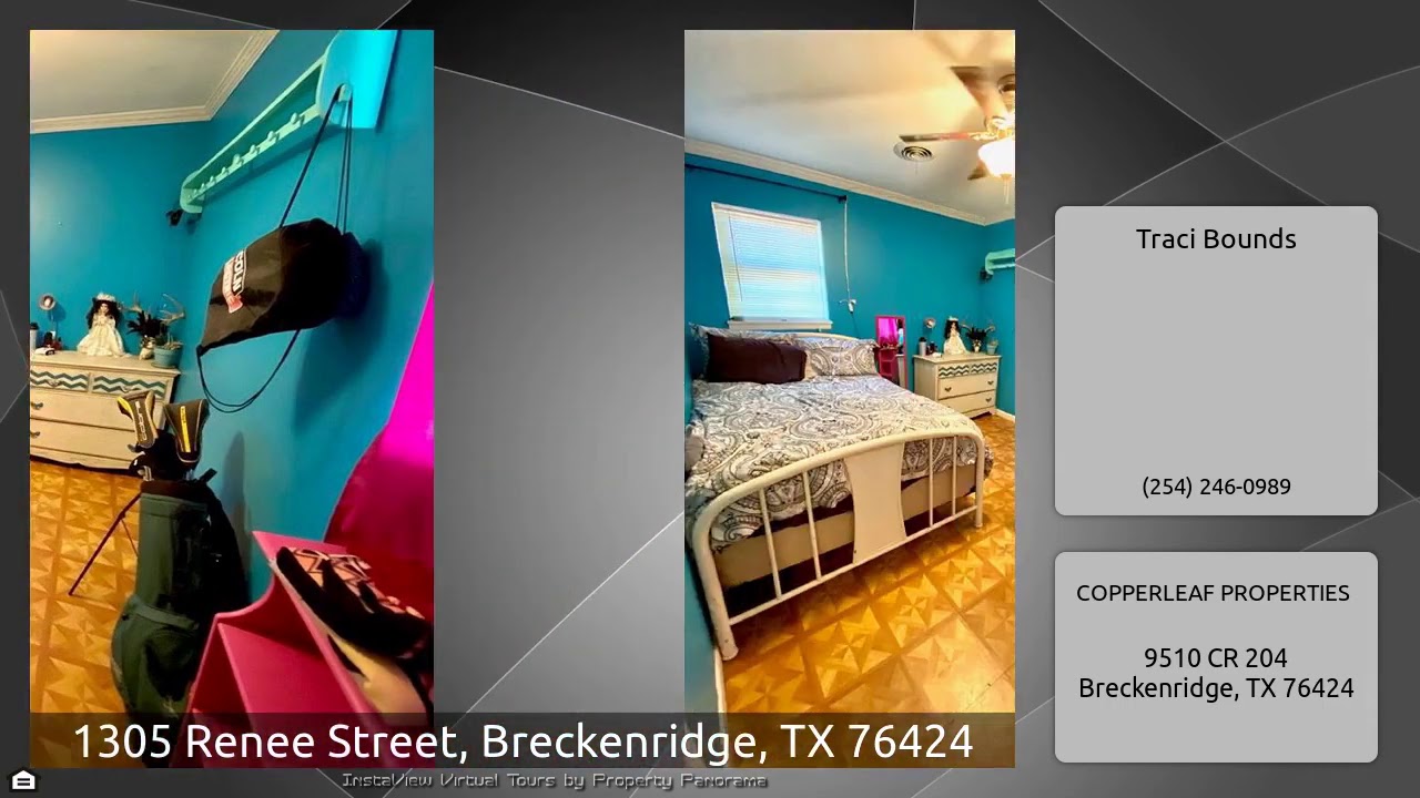 The Virtual Tour for the property at 1305 Renee Street, Breckenridge, TX 76424 listed for $140,000: Other homes for sale by Traci Bounds of COPPERLEAF PROPERTIES: MOVE IN READY 4 bedroom, 1724sqft house in a great neighborhood.Large open concept living and dining area with wood burning fireplace framed with book shelves.Galley kitchen open to dining and living area.French doors on both sides of living room open to the fenced in backyard and hot tub.Hall bath with tile surround and large vanity.Large welcoming entry way offers beautiful cedar wood barn door to 4th bedroom.Laundry room with …