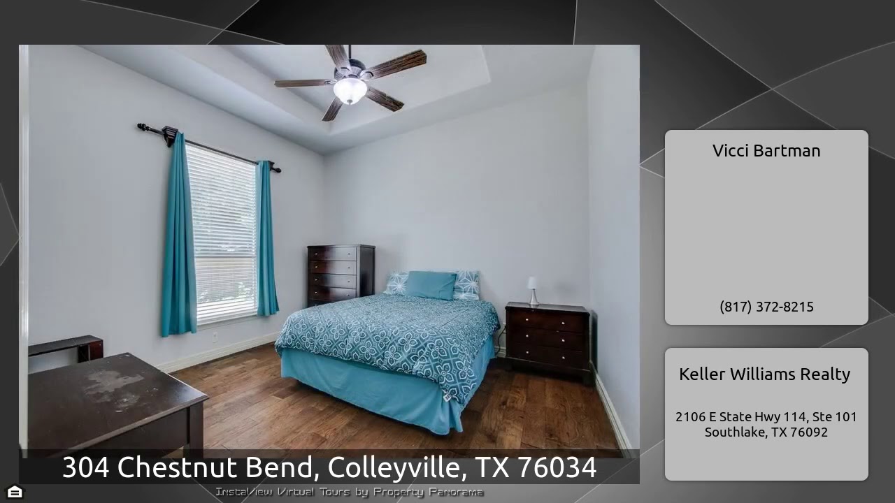 The Virtual Tour for the property at 304 Chestnut Bend, Colleyville, TX 76034 listed for $739,800: Other homes for sale by Vicci Bartman of Keller Williams Realty: This home offers quality finish-out, highly sought after Colleyville Elementary & Middle School! Hand scraped hardwood floors, high ceilings with beautiful architectural touches throughout. This home offers 4 bedrooms + Study down & 1 bedroom w-game room & full bath upstairs. Office with built-ins and French doors, formal dining & family room with fireplace, gourmet kitchen finished with granite counters & stainless steel …