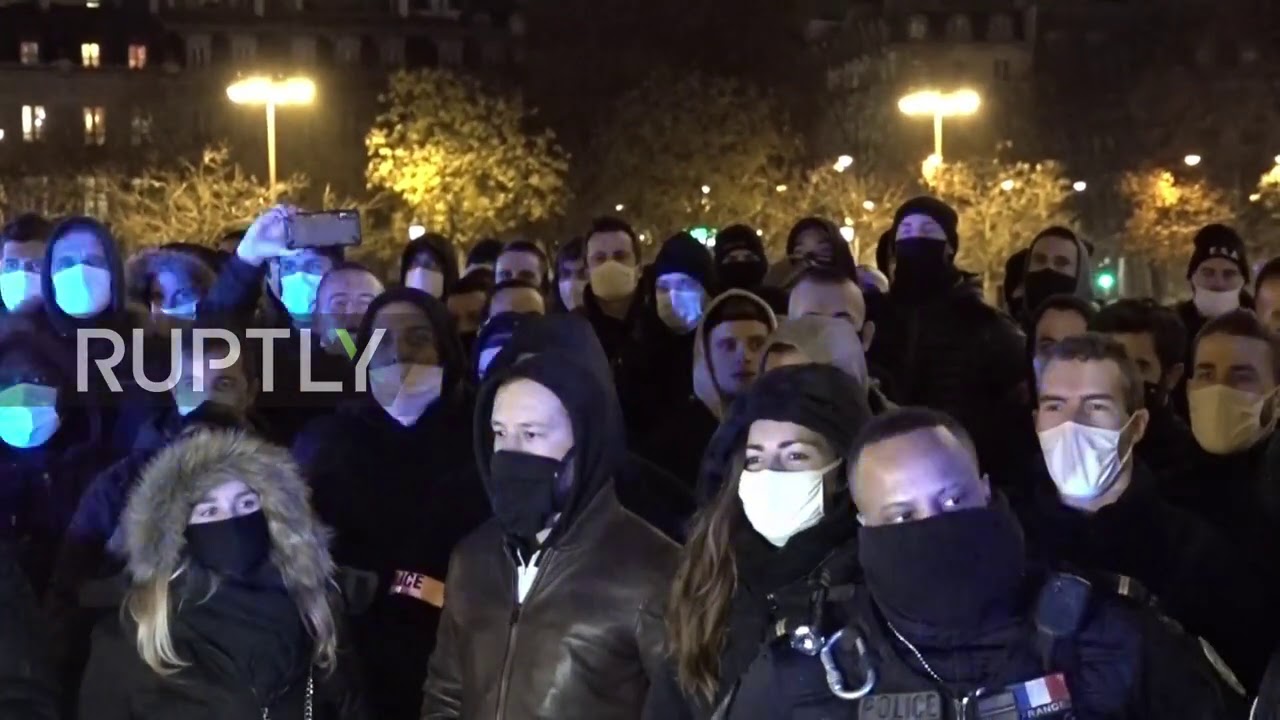 Policemen were seen protesting in the centre of the French capital, following the remarks of the country’s President Emmanuel Macron on police violence and government’s intentions to re-write part of a security bill protecting policemen’s identity, Monday.