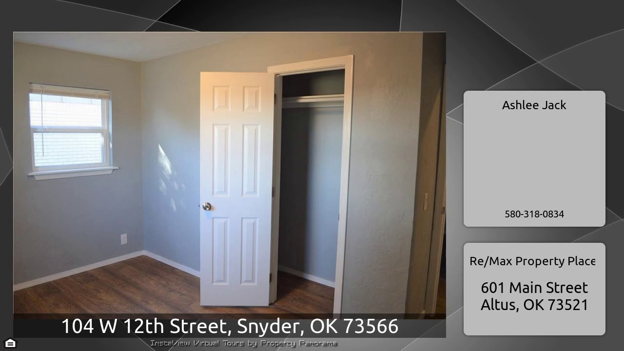 The Virtual Tour for the property at 104 W 12th Street, Snyder, OK 73566 listed for $141,000: Other homes for sale by Ashlee Jack of Re/Max Property Place: Completely remodeled, move-in-ready 3 bedroom, 1.5 bath. Featuring wood tile throughout the house. Split floor plan with spacious kitchen and living room area. Kitchen features beautiful, white cabinets, granite counter tops and stainless steel appliances. This spacious kitchen opens into the dining room area with French doors leading into the patio area. Large backyard with chain link fencing. New roof and central H&A. This is a Must See!