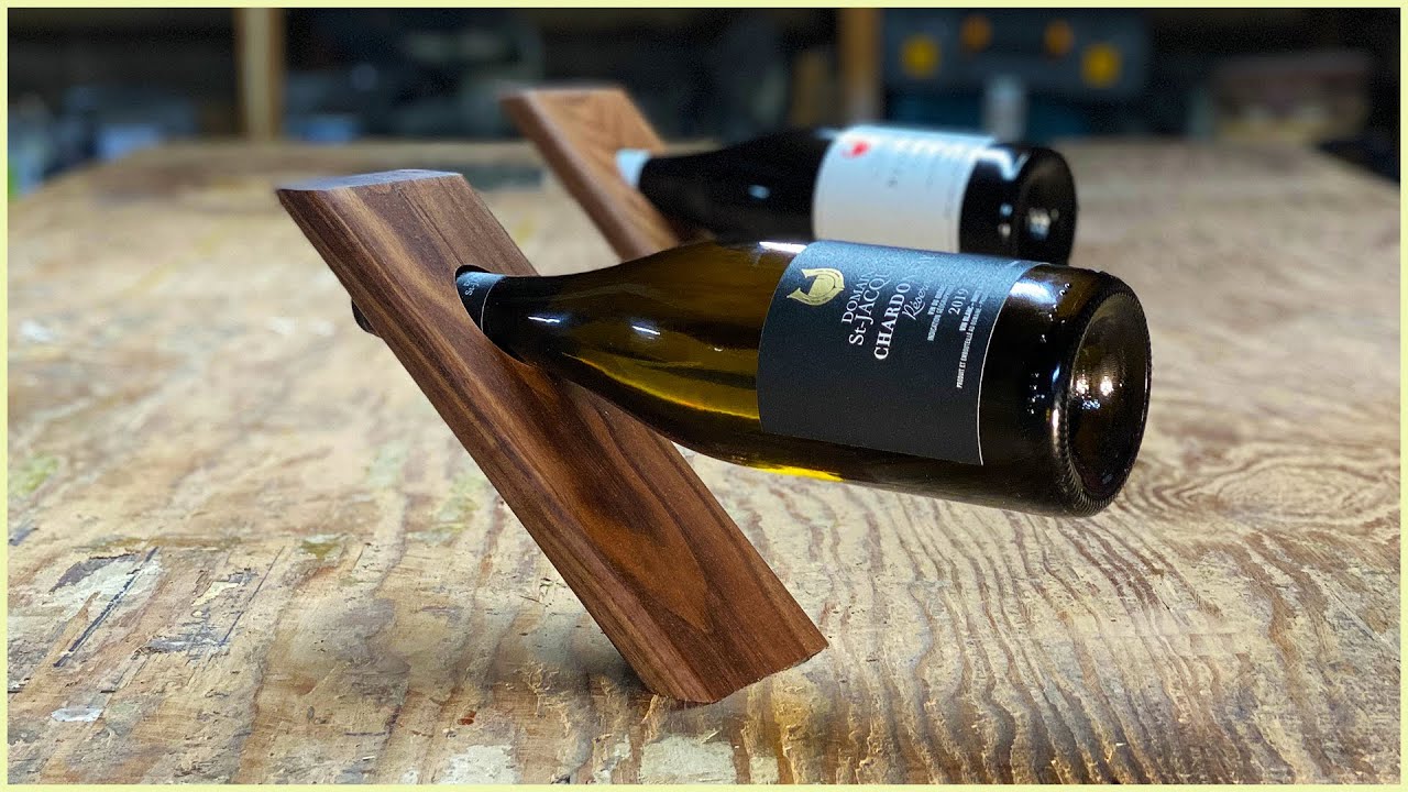 In this video, I’m showing you how to make a floating wine bottle holder out of black walnut. Watch the English version here: