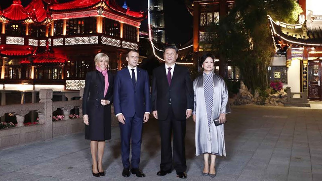 Chinese President Xi Jinping and his wife Peng Liyuan on Tuesday met with French President Emmanuel Macron and his wife Brigitte Macron in Shanghai. Upon arrival at the Yuyuan Garden, Macron and his wife were warmly welcomed by Xi and Peng. The two couples walked in the garden and enjoyed the scenery. #China #France