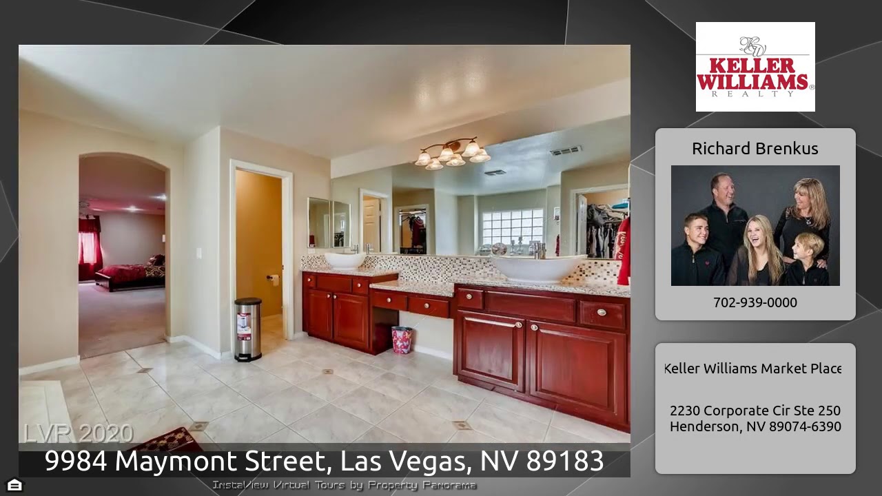 The Virtual Tour for the property at 9984 Maymont Street, Las Vegas, NV 89183 listed for $750,000: Other homes for sale by Richard Brenkus of Keller Williams Market Place: *Upgraded 2 Stry W Crtyrd In Gated Cmmnty*Unique Entry W Bttrfly Strcss*Spacious 4 Cr Grg*Italian Mrbl Flrng*French Chateau Chandeliers*Designer Gourmet Ktchn W Massive Grnt Islnd & Cntrl Ck Top W Islnd Rnge Hood,Cherry Cbnts,Ss Applncs&Back Splash*Loft & Den*2 Mstr Bdrms, 1 Upstrs 1 Dwnstrs, 2 Offces*Mstr Bth W Jacuzzi,Rain Shwr,Bowl Sinks & Granite Cntr Tops*Ample Storage*Open Backyard*Koi Pond, Lrg Sparkling Pool W Wtrfll …