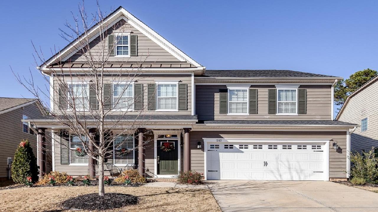 Stunning home that shows like a model! Open floorplan, this gem welcomes you with extensive wide plank wood floors that flows throughout the main living areas on the first floor. First floor features a large dining room, office with French doors and in law suite (5th bedroom). Eat in gourmet kitchen with oversized 6 person island is perfect for entertaining and boasts granite countertops, gas cooktop, wall oven, tile backsplash, walk in pantry, and breakfast nook! Kitchen flows to the spacious family room with beautiful fireplace. Located upstairs are the generously sized secondary bedrooms and the relaxing owners suite with sitting area and owners bath that features granite countertops, walk in tile shower, soaking tub, dual sinks and his and her closets! Oversized bonus room is perfect as a playroom or media room- You decide! Home also features a covered patio that leads to a custom stone patio and fire pit located in your fenced backyard. Great location- walkable to shops & dining