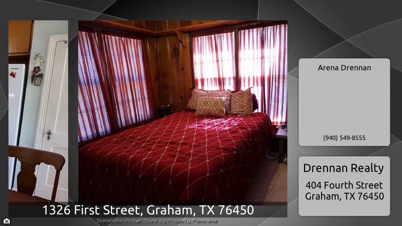 The Virtual Tour for the property at 1326 First Street, Graham, TX 76450 listed for $112,500: Other homes for sale by Arena Drennan of Drennan Realty: 3-2-1 frame home with steel exterior siding; Living & dining area separated by French doors; Original hardwood floors in the living & dining rooms; Knotty pine paneling in the dining area & 2 bedrooms; The kitchen has a refrigerator, wood cabinets with roll-out drawers, lazy-susan, pass-through into dining area, dishwasher, disposal & pantry; A large utility room with full size washer & dryer; 2-RV slots with water & electricity; Fenced side …