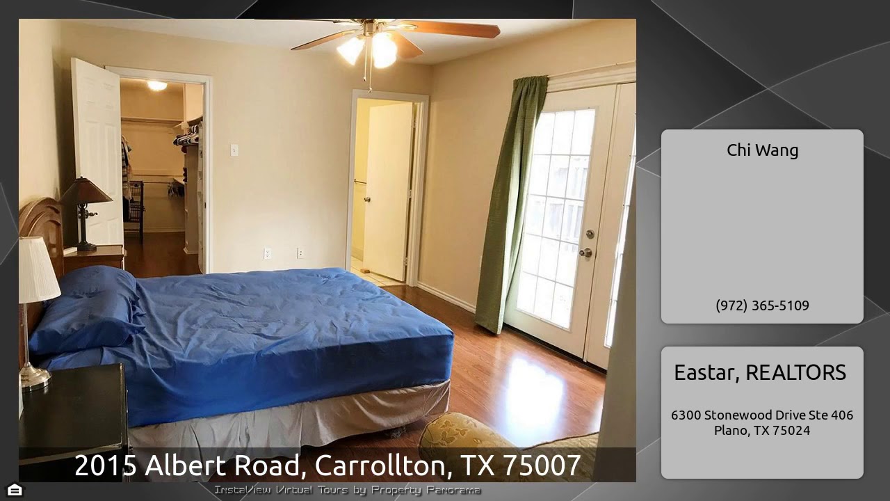 The Virtual Tour for the property at 2015 Albert Road, Carrollton, TX 75007 listed for $278,000: Other homes for sale by Chi Wang of Eastar, REALTORS: Great corner lot home located in an established neighborhood. Beautiful laminate wood floors throughout the large family room, open floor plan, beautiful kitchen with dark cabinets, tile floors at the kitchen, casual dining room, living room. The bright and airy master bedroom has french doors out to its very own patio, lovely master bath with dual sinks, linen closet, and large tubs. Plenty of room to grow and entertain here! Furniture, …