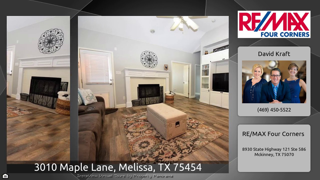 The Virtual Tour for the property at 3010 Maple Lane, Melissa, TX 75454 listed for $250,000: Other homes for sale by David Kraft of RE/MAX Four Corners: Perfect starter home for your family with updated flooring, ALL bedrooms on the first level with a multi-use space with french door entry – perfect for office, playroom, gym and more! Generous master suite privately tucked in rear of home. Huge eat-in kitchen with easy access to the dining room. All new interior paint, new tile and carpet make this home shine. HUGE playroom with full bath upstairs. Could also serve as additional bedroom or …