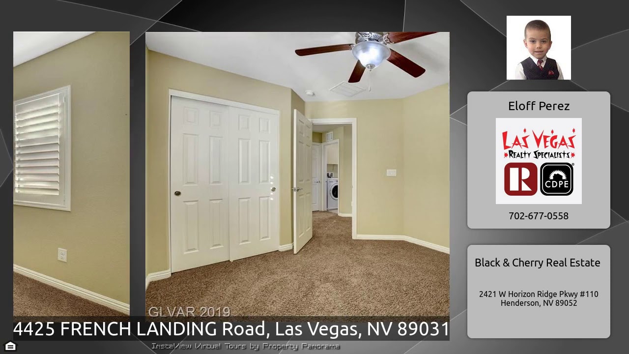 The Virtual Tour for the property at 4425 FRENCH LANDING Road, Las Vegas, NV 89031 listed for $1,750: Other homes for sale by Eloff Perez of Black & Cherry Real Estate: 3 beds, 2.75 baths, 2 car garage, open kitchen w/ granite counters, stainless steel appliances, living/dining room combo, plantain shutters, downstairs bedroom, ceiling fans, master retreat w/ walk in closet, balcony access, master bath w/ garden tub, separate shower, dual sinks, large loft/game room, private yard, covered patio, monthly landscaping included, schools, shopping, dining & entertainment nearby. NO PETS, NO SMOKING, …