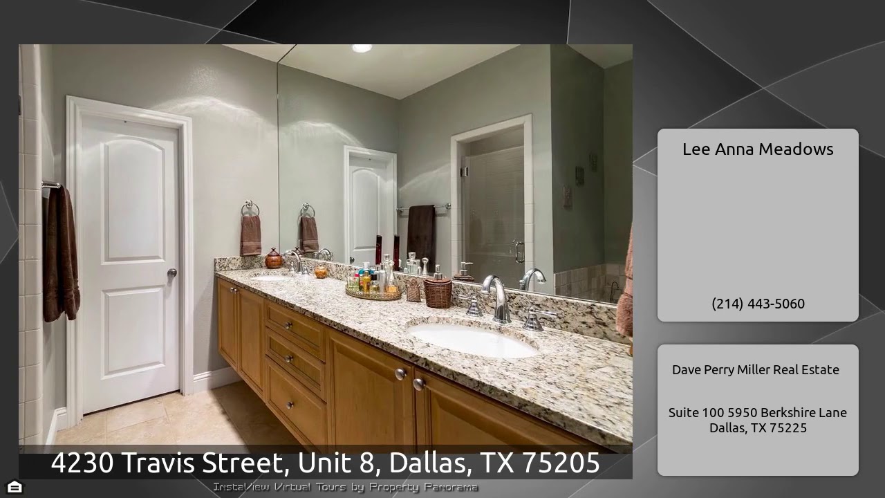 The Virtual Tour for the property at 4230 Travis Street, Unit 8, Dallas, TX 75205 listed for $469,000: Other homes for sale by Lee Anna Meadows of Dave Perry Miller Real Estate: Fabulous Knox District Townhome nestled between the Katy Trail, Trader Joes and Dallas’s premier dining spots! This 2 Bed, 2.1 Bath home boasts beautiful hardwoods, open Living and Dining spaces, balcony and large sunny private Office! A French Chef will love this upgraded Kitchen with Kitchen Aid Arch Series SS Appliances, wine fridge, granite, ample cabinets, oversized pantry and bar-height island. Third Level …