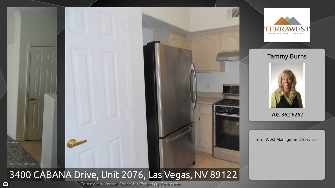 The Virtual Tour for the property at 3400 CABANA Drive, Unit 2076, Las Vegas, NV 89122 listed for $159,000: Other homes for sale by Tammy Burns of Terra West Management Services: Blackhorse Condo with View of Golf Course! Interior features Dining Area with French Doors leading to Balcony with spectacular view of golf course! Newer carpeting, stainless steel appliances, crown molding, upgraded faucets, ceiling fans, and neutral colors throughout! Community amenities include swimming pool, spa, exercise room, and gated. Grounds nicely maintained!