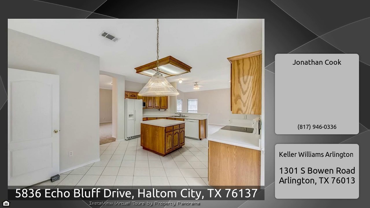 The Virtual Tour for the property at 5836 Echo Bluff Drive, Haltom City, TX 76137 listed for $237,900: Other homes for sale by Jonathan Cook of Keller Williams Arlington: Lovely home with new carpet and paint throughout. Enter into a formal living and dining room combo. Stay connected to family while preparing meals in this eat in kitchen with island, breakfast bar & white appliances open to a second living area with cozy gas log fireplace and sliding door to covered back patio. Retreat to your master suite with 3 walls of windows and french doors to the en suite with garden tub, separate …