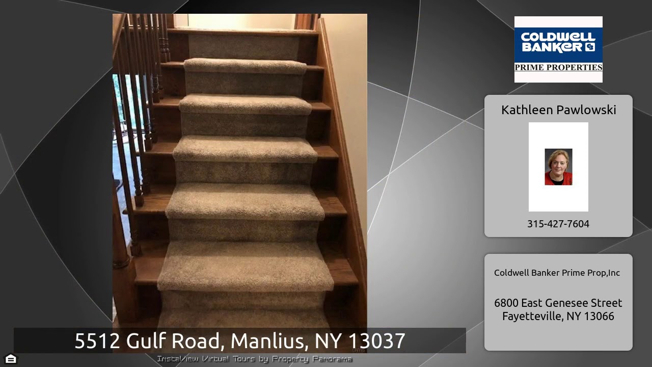 The Virtual Tour for the property at 5512 Gulf Road, Manlius, NY 13037 listed for $249,000: Other homes for sale by Kathleen Pawlowski of Coldwell Banker Prime Prop,Inc: This wonderfully, large home is on a private lot in FM school district.The lower level of this split features a large family room with woodburning fireplace and the fourth bedroom. It is a walkout. The first floor has the front entryway and french glass doors to a very large dining area with a nice bay window. The kitchen has a jenn air grill, solid surface counters,and all new knobs and appliances. There is a half bath. The …