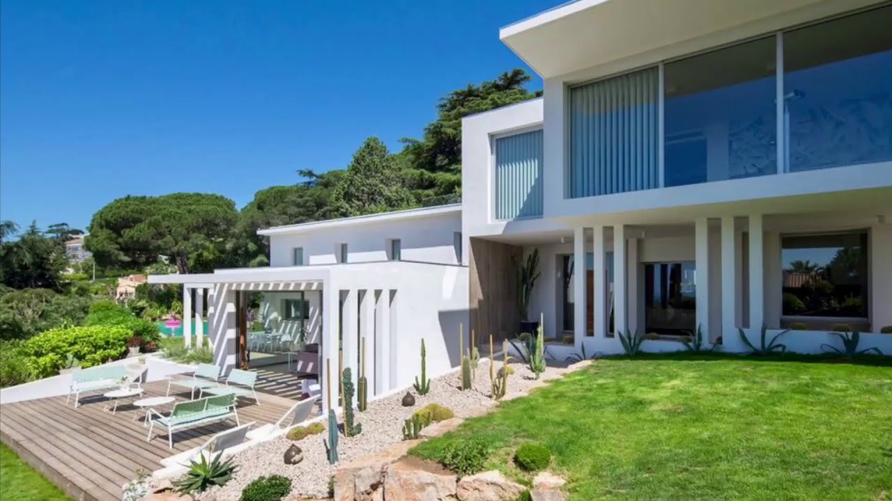 In a quiet area of the Croix des Gardes, close to the city center in Cannes, this contemporary holiday villa of 500 m2 is fully air-conditioned and renovated with high quality amenities surrounded by 3000 sqm of gardens with a swimming pool (17 m) and sea view.