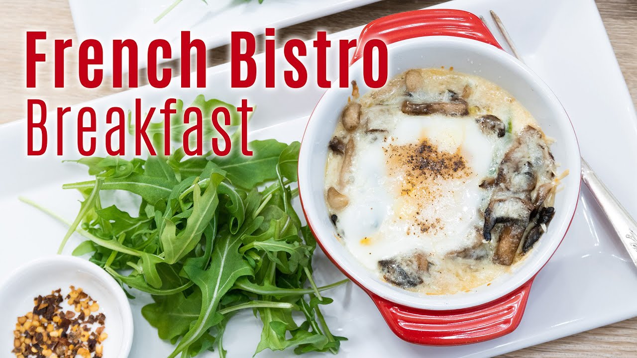 Turn your kitchen into a French Bistro with this simple baked eggs breakfast! Ingredients, measurements, and equipment are listed below. Makes 3 portions.