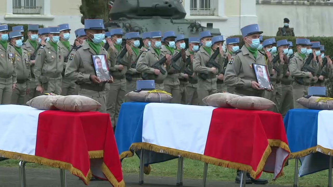 “You were each moved by this magnificent desire to serve your country”: France’s Minister of the Armed Forces, Florence Parly, presides over a ceremony to pay tribute to three French soldiers who were killed a week ago in Mali.