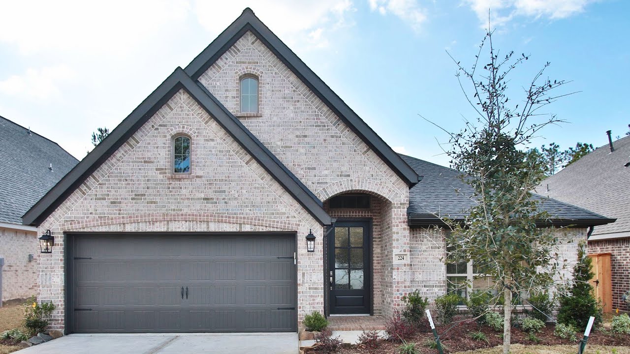 Located in Montgomery, this 3,000-acre North Houston master-planned community is conveniently located near I-45, FM 1488 and Highway 105 and the Grand Parkway (HWY 99). This 2110 sq. ft. plan offers three bedrooms and two full bathrooms. Home office with French doors off entry with 11-foot ceiling. Family room with a cast stone fireplace and a wall of windows opens to kitchen and dining area. Kitchen offers corner walk-in pantry and generous island with built-in seating space. Secluded primary suite includes dual vanity, garden tub, separate glass-enclosed shower and large walk-in closet in primary bath. Game room with French doors just off family room. All secondary bedrooms feature walk-in closets. Extended covered backyard patio. Two-car garage. #perryhomes