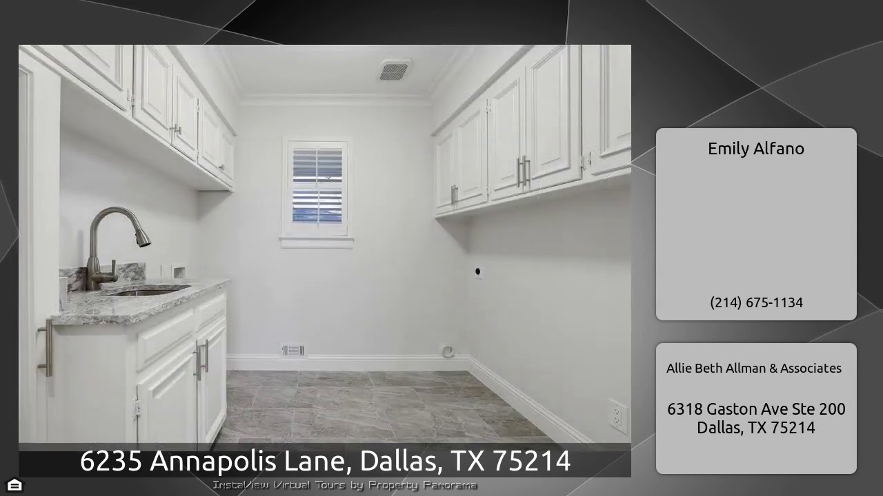 The Virtual Tour for the property at 6235 Annapolis Lane, Dallas, TX 75214 listed for $745,000: Other homes for sale by Emily Alfano of Allie Beth Allman & Associates: Charming, light and bright traditional situated on a gorgeous street in the heart of desirable Caruth Meadows. Renovated & ready for new owners, this 3 bed 3 bath PLUS office won't disappoint! Featuring expanded gourmet kitchen, new master bath with large WIC, oversized master bedroom, raised 9' ceilings, large laundry with sink and storage, new windows and french doors. Home offers ample storage and wonderful floorplan. …