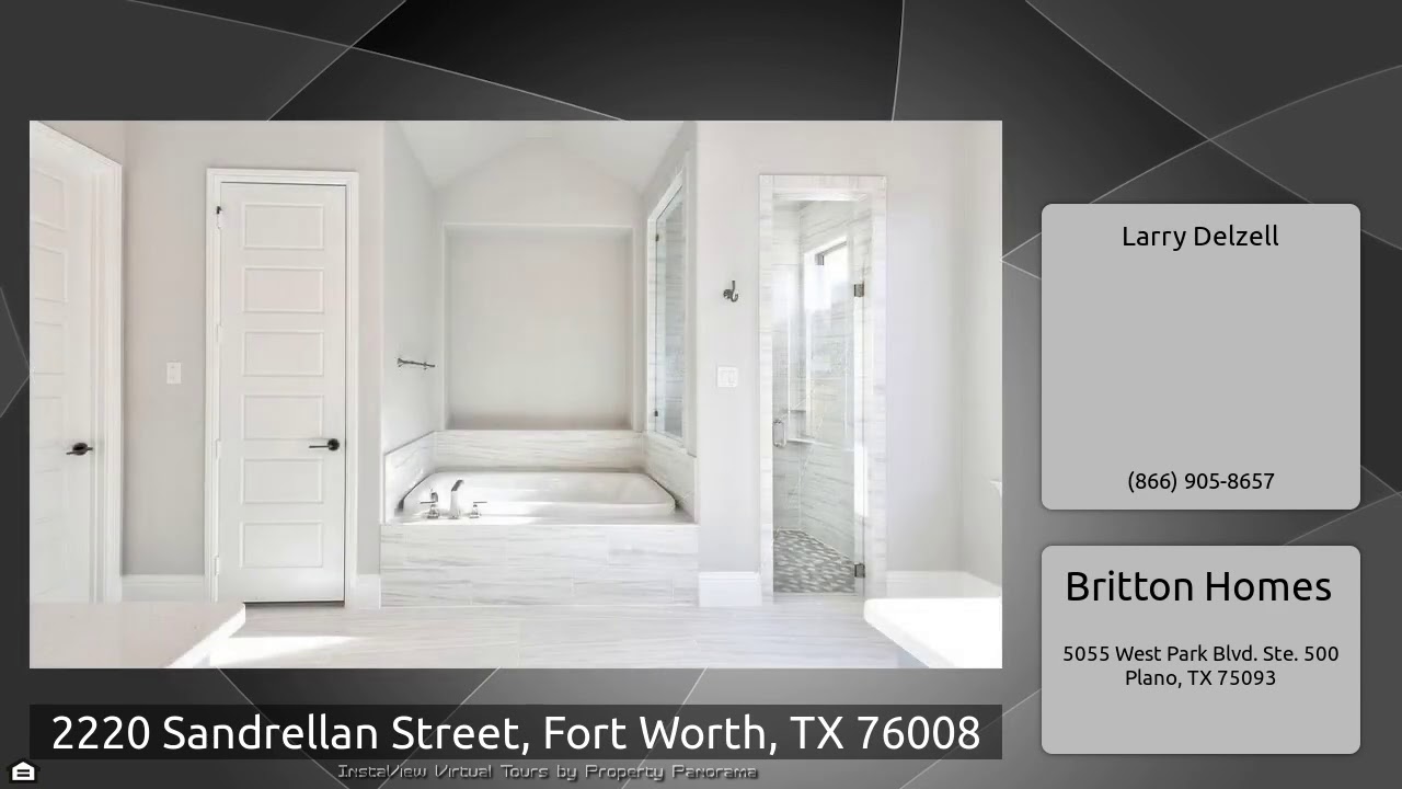 The Virtual Tour for the property at 2220 Sandrellan Street, Fort Worth, TX 76008 listed for $699,900: Other homes for sale by Larry Delzell of Britton Homes: BRITTON HOMES NEW CONSTRUCTION! Extended entry feature 12-foot coffered ceilings. Game room with French doors. Formal dining room. Hardwood floors. Kitchen features abundant counter space, an island with built-in seating space a large walk-in pantry and a Butler's pantry. Family room with sliding glass doors and a cast stone fireplace. Library with French doors. Master suite features 13-foot coffered ceilings. Double doors leads to …