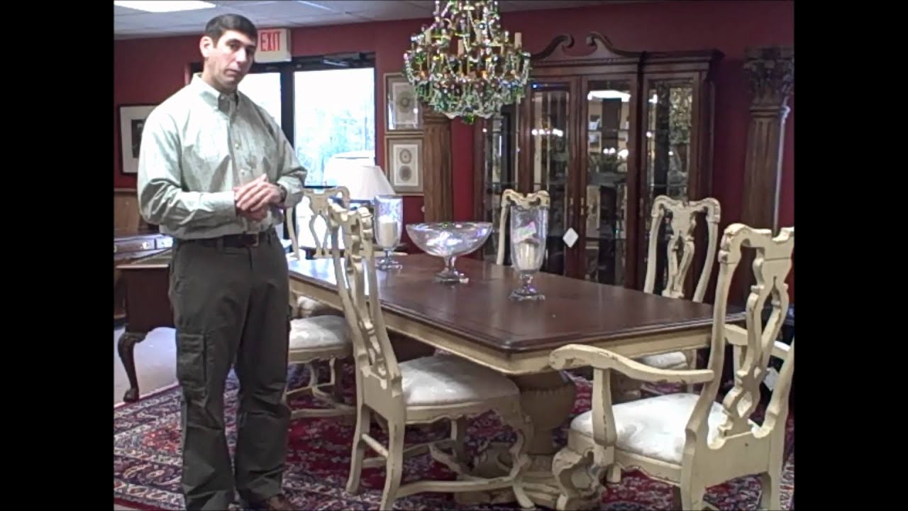2567-1 Habersham Dining Set Habersham dining table with 2 leaves and 6 chairs. 96″ wide x 44″ deep x 30″ high leaf-18″ wide Total- 132″ wide Arm Chair- 33″ wide x 24″ deep x 45″ highSee more at our website: 12211camera phoneCuisineDiningFrancefreeFrenchfrench cuisineFrench diningHabershamPieceROOMSetsharinguploadVideovideo phoneVlogWeekYouTube