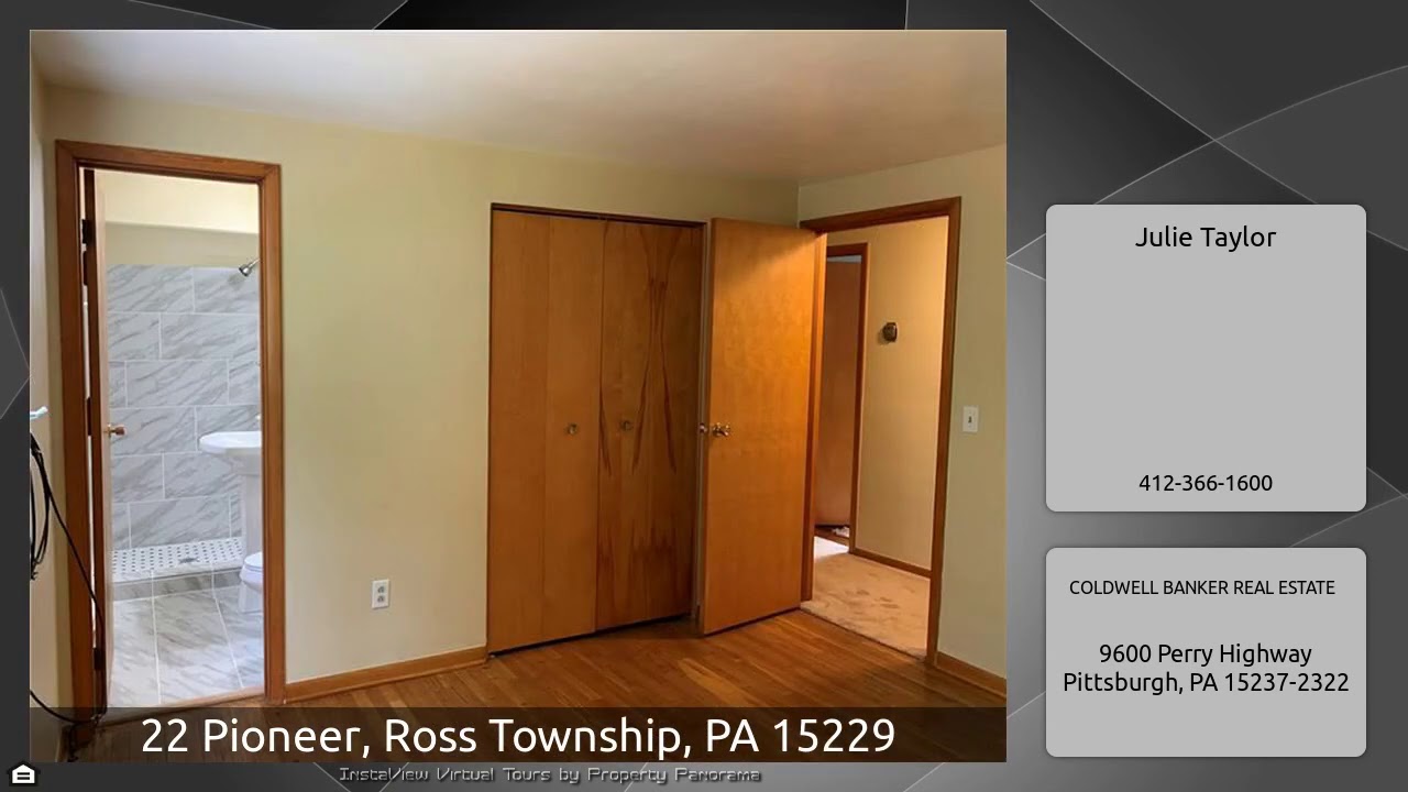 The Virtual Tour for the property at 22 Pioneer, Ross Township, PA 15229 listed for $255,000: Other homes for sale by Julie Taylor of COLDWELL BANKER REAL ESTATE: Solid built Brick home with master bed and bath, The master bath is brand new with beautiful ceramic tile shower. double closet in master bedroom and hardwood floors. Living room features hardwood flooring and plaster walls. Dining room has beautiful french doors to lead to deck with retractable awing, and a shed for all your outdoor mechanics. Finished lower level with a huge storage room that houses the hot water tank and laundry …