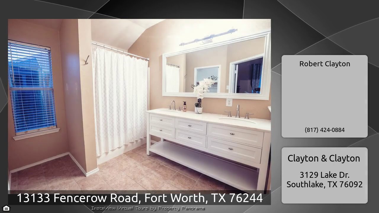 The Virtual Tour for the property at 13133 Fencerow Road, Fort Worth, TX 76244 listed for $299,900: Other homes for sale by Robert Clayton of Clayton & Clayton: Designer home, kept to perfection & updated to meet any HD TV expectations! Gorgeous wood inspired floors greet your arrival, leading past french door'd study, previously used as a 4th bedroom, and formal dining room, to inviting family room which opens across spacious breakfast bar-work island to gourmet kitchen w-SS appliances perfect for the family chef! Oversized master suite with walk in closet and gorgeous vanity. The …