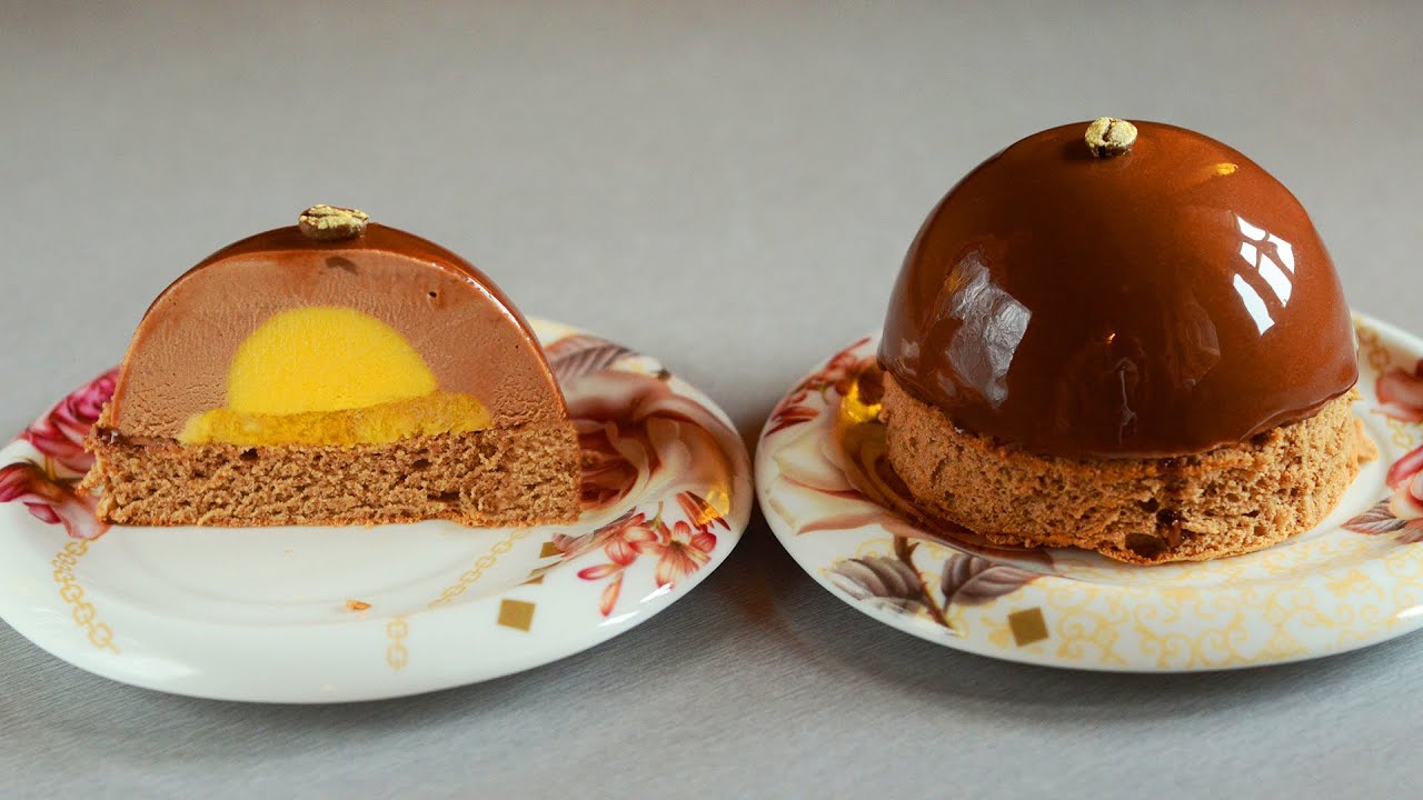 Learn how to make layered cakes with chocolate biscuit, mango curd, exotic compote and chocolate espresso mousse.