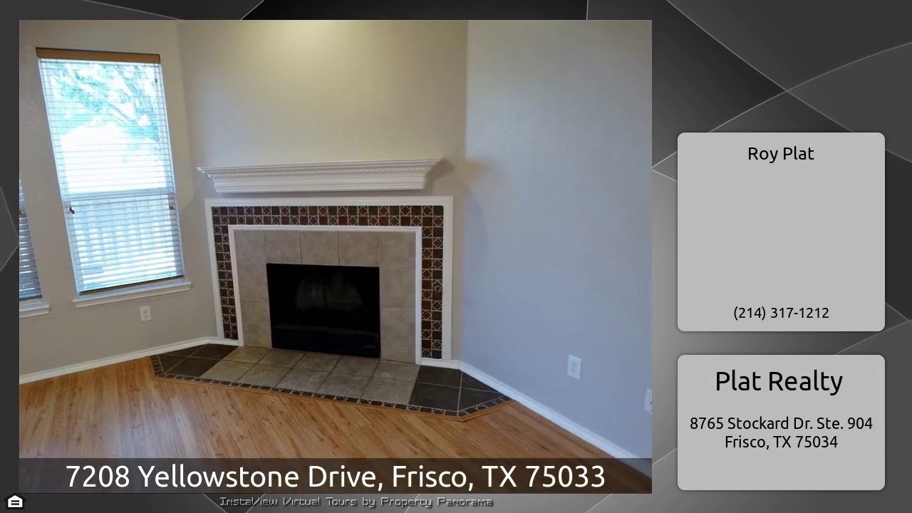 The Virtual Tour for the property at 7208 Yellowstone Drive, Frisco, TX 75033 listed for $1,950: Other homes for sale by Roy Plat of Plat Realty: This beautiful home is centrally located in highly rated Frisco ISD, close to restaurants and conveniences. The mainfloor features an open living floor plan with formal dining, family room, and spacious kitchen with moveable island and corian countertops. All four bedrooms and 2 full bathrooms are on the mainfloor, with a large living room on the second floor. The fourth bedroom has french doors allowing it to convert easily to a home office …