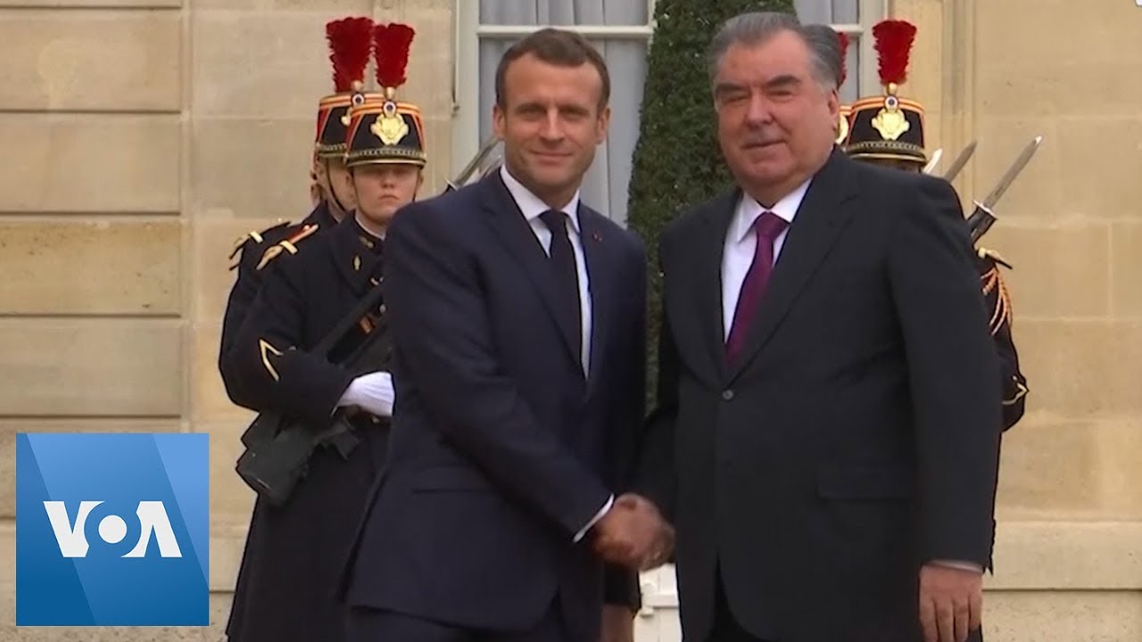 French President Emmanuel Macron welcomed Tajikistan President Emomali Rahmon to the Elysée Palace, Friday, November 8 in Paris.