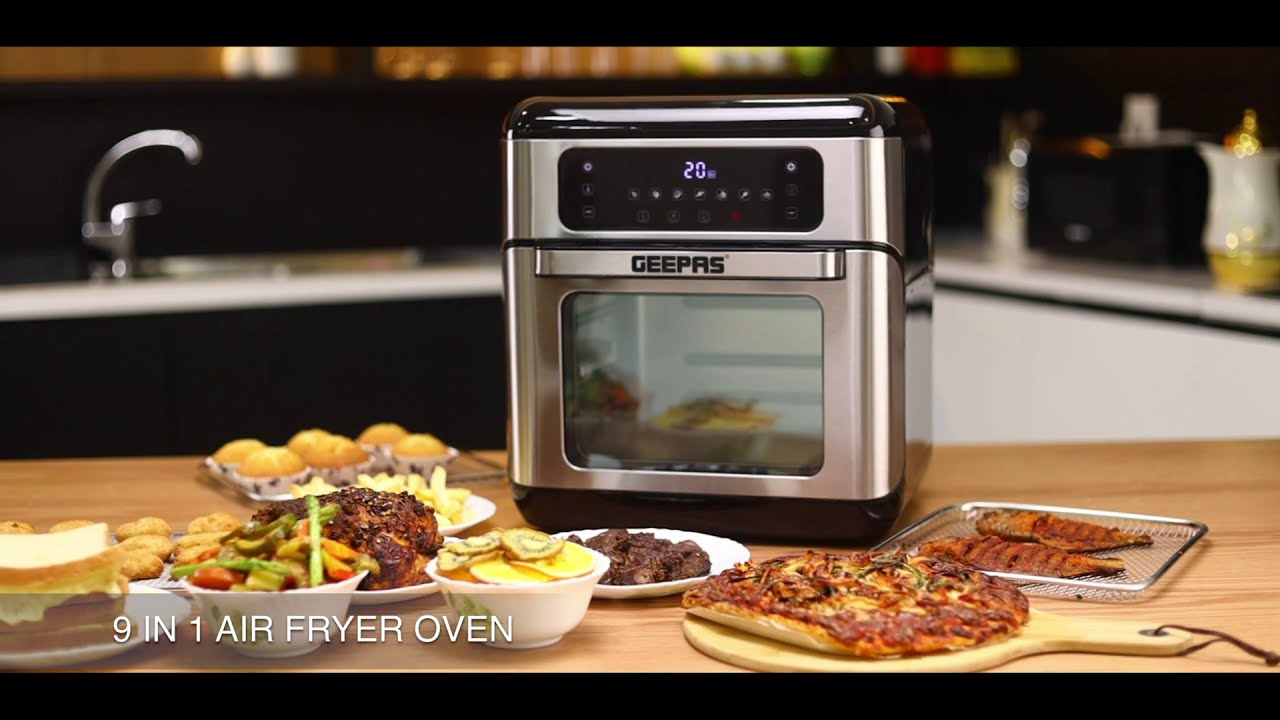 Geepas GAF37518 1500W Air Fryer Oven Digital 9-in-1 Convection Air Fryer – Toaster Oven Combo Rotisserie & Dehydrator, Oil-Free Countertop Oven with LED Digital Touchscreen, 90 min Timer | 2 Years Warranty