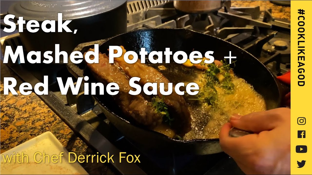 With #ValentinesDay just around the corner, Chef Derrick Fox (Master Chef, Season 6 finalist) is fixin’ up something that’s easy, sexy and romantic. 😮❤️🌹 Enjoy this delicious seared steak, creamy mashed potatoes and tasty red wine sauce.