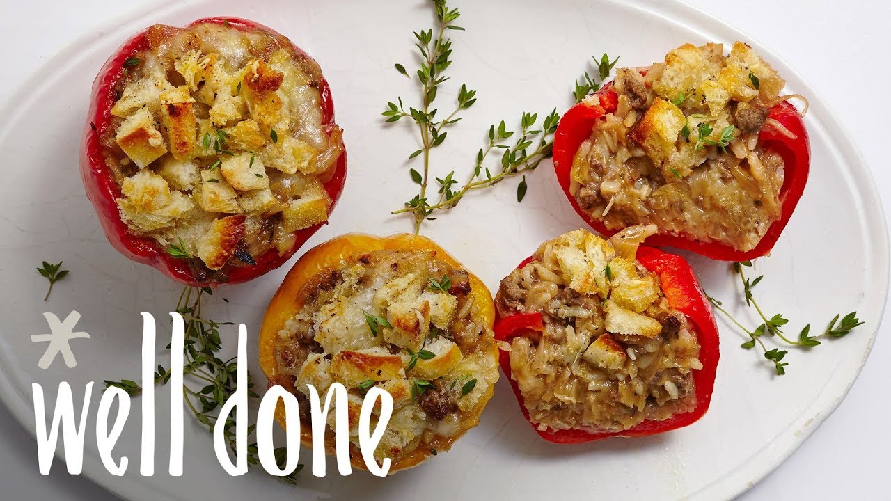 How To Make French Onion Stuffed Bell Peppers | Recipes | Well Done