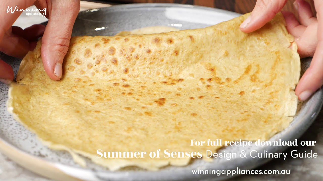 In the kitchen today is our Winning Appliances Brand Ambassador Sergio, joined by The Healthy Chef, Teresa Cutter, who takes you through her French crepe recipe. Made with a few simple ingredients, these crepes are light, delicate, and melt in your mouth. They are perfect to serve with both sweet or savory toppings, such as fresh fruit, greek-style yogurt with a drizzle of honey, creamy scrambled eggs, or smashed avocado with a little bit of feta.