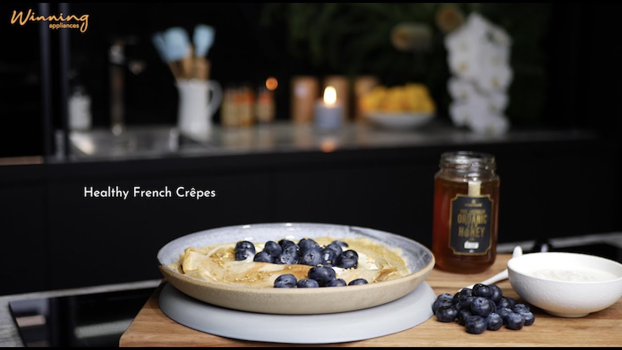 Discover a delicious and healthy French Crepe recipe with Winning Appliances Brand Ambassador Sergio Perera and The Healthy Chef, Teresa Cutter. Made with a few simple ingredients, these crepes are light, delicate, and melt in your mouth. They are perfect to serve with both sweet or savoury toppings, such as fresh fruit, greek-style yoghurt with a drizzle of honey, creamy scrambled eggs, or smashed avocado with a little bit of feta.