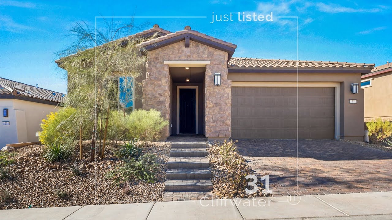 31 Cliffwater | Nestled in the new Del Webb premier active community, this gem of a home is the epitome of opulence. Lifestyle meets convenience with the amenity-rich and impressive recreational center within a short walk. Meticulously stylized with chic tilework and exceptional design finishes. The gourmet Kitchen enjoys bright custom cabinets, Stainless appliances, and sleek Quartz counter tops to gather in sophistication. Light fills the entertaining space and leads out to a manicured outdoor sanctuary with a patio of pavers and elegant landscaping. The Den features built-in shelving and glass French-doors for the perfect retreat. Not a detail was missed, from the ambient lighting to the decorative tray ceilings. Enjoy all the designer dual-shade window-coverings, organizational built-ins, outdoor décor and TV’s included in this amazing opportunity.
