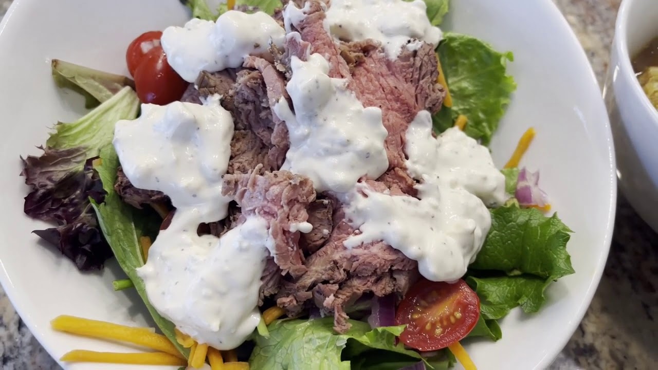 Cut the steaks crosswise into thin slices. Arrange the steak slices atop the salad and drizzle more vinaigrette over the steak